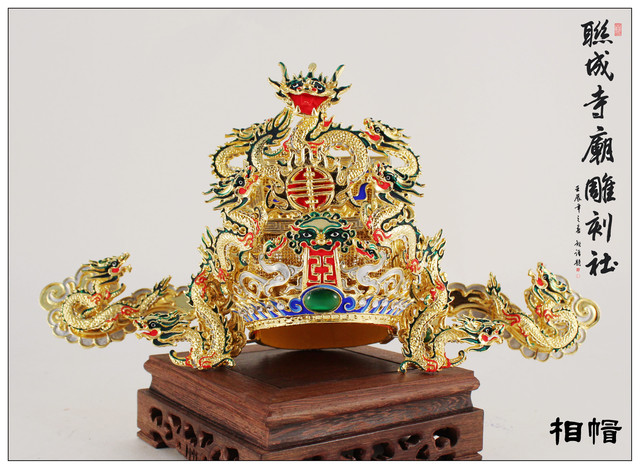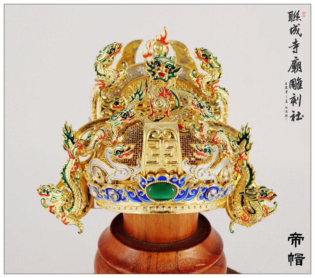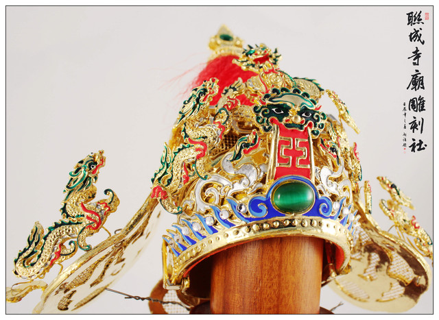 古體紙帽新版 - 帝帽 王帽 上帝帽 太子冠 媽祖帽 相帽 手工漆線 純金箔 神明紙帽.神明帽