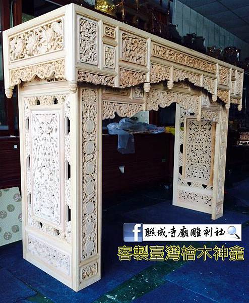 臺灣檜木 精雕 神龕 / 臺灣檜木雕刻蟒龍 桌裙
